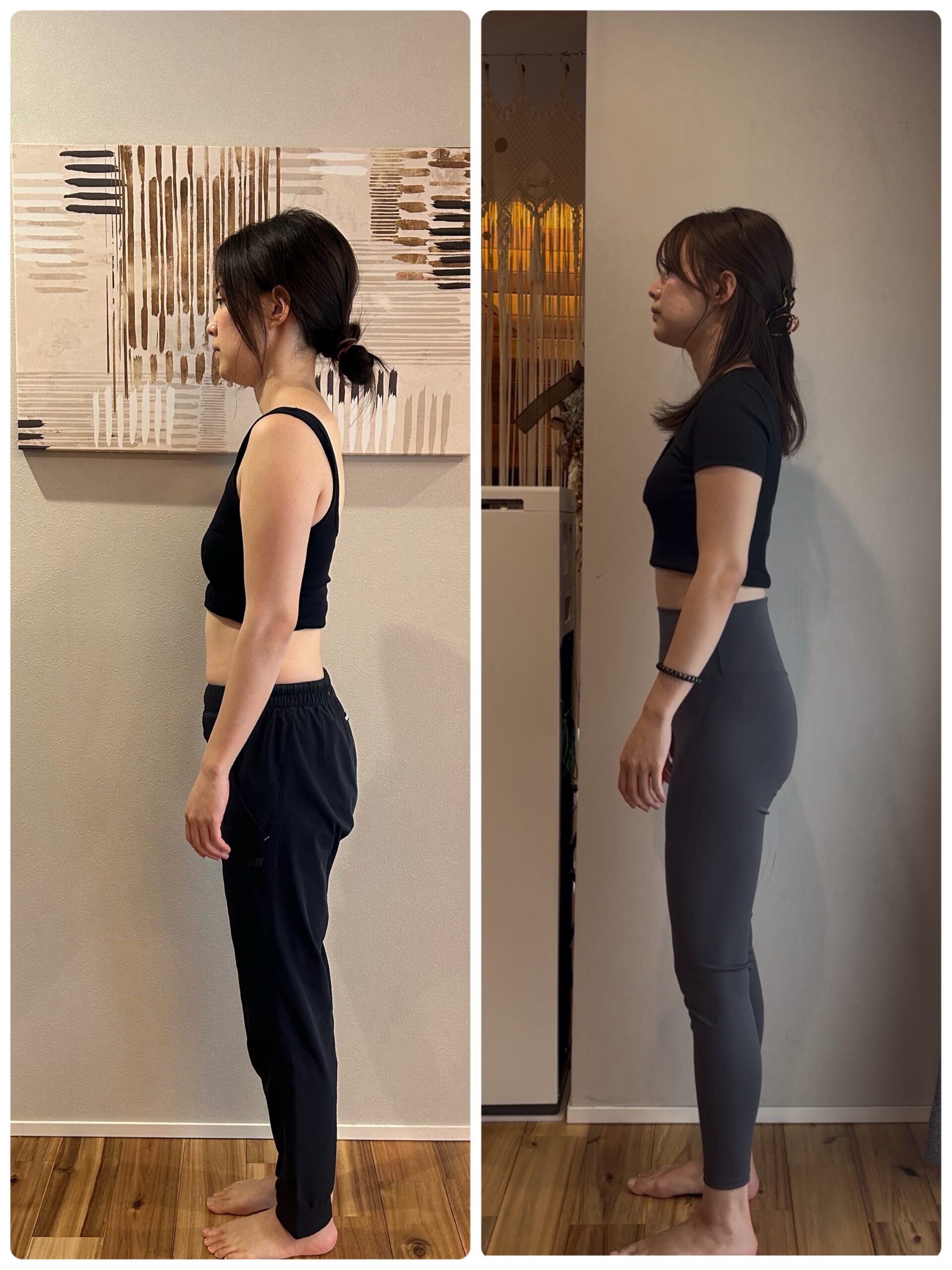 お尻・胸の位置が違うし、姿勢が整うことで小顔にもなっています(^^)